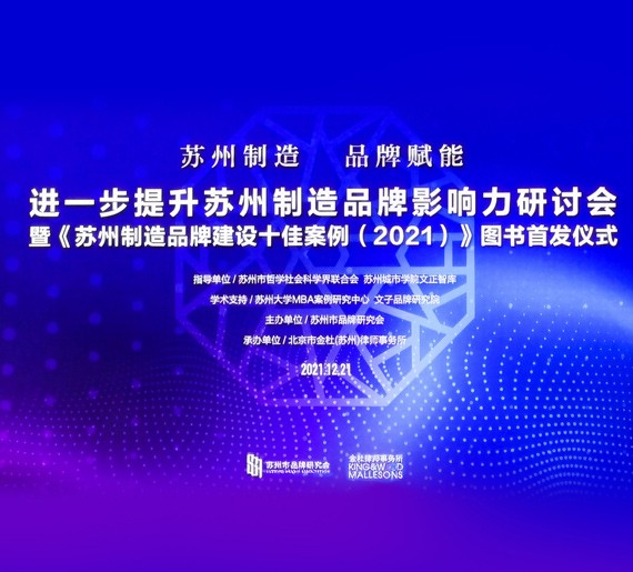 12月21日,由蘇州市品牌研究會召開的以“蘇州制造 品牌賦能”為主題,進一步提升蘇州制造品牌影響力研討會暨《蘇州制造品牌建設(shè)十佳案例(2021)》圖書首發(fā)儀式,在北京市金杜(蘇州)律師事務(wù)所舉行。同里紅入選《蘇州制造品牌建設(shè)十佳案例(2021)》一書,并作為企業(yè)品牌十佳案例之一參與了新書的首發(fā)儀式。